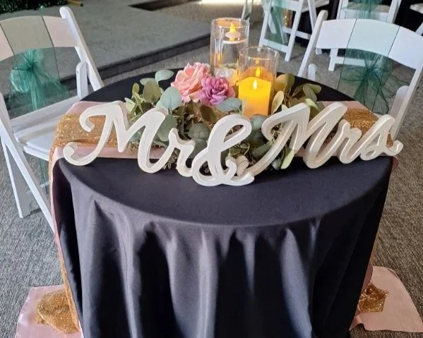 This complete decor and linen set up is available to you complimentary when you rent The Grandeur. Decor comes from our extensive inventory.